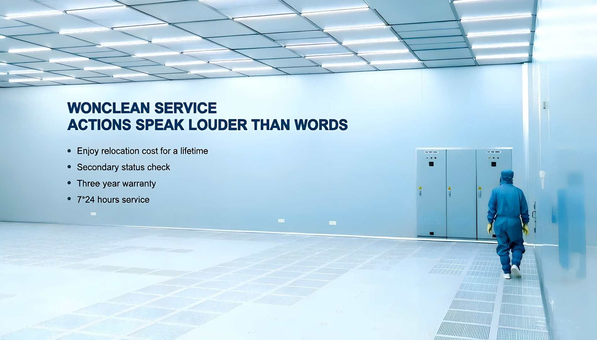 Mehr als nur der Preis: Die wahren Werte eines WONCLEAN Reinraums der Klasse 1000 Bei der Bewertung eines Reinraums der Klasse 1000 (ISO 6) ist die anfängliche Investition nur ein Kostenfaktor. Die wahren Kosten umfassen langfristige Betriebsstabilität, Energieeffizienz und die Flexibilität, sich an zukünftige Anforderungen anzupassen. Wir bei WONCLEAN entwickeln modulare Reinräume, die über ihren gesamten Lebenszyklus hinweg einen außergewöhnlichen Mehrwert bieten. Hochwertige Konstruktion ist keine Ausgabe, sondern eine strategische Investition in unterbrechungsfreie Produktion und Produktintegrität. Lassen Sie uns gemeinsam entdecken, wie sich unsere Designphilosophie in konkreten Kostenvorteilen niederschlägt. Präzisionstechnik für planbare und niedrigere Betriebskosten Der größte Kostenfaktor eines Reinraums ist sein Betrieb, vor allem der Energieverbrauch. Ein schlecht abgedichteter Raum mit ineffizienter Luftzirkulation zwingt die Klimaanlage zu Überstunden, um die strenge ISO-6-Norm (≤ 352.000 Partikel ≥ 0,5 μm pro m³) einzuhalten. Die Lösung von WONCLEAN basiert auf hochwertigen Materialien. Unsere modularen Paneele, erhältlich aus robustem, farbbeständigem Stahlverbundwerkstoff oder korrosionsbeständigen HPL-Platten, gewährleisten außergewöhnliche Luftdichtheit. In Kombination mit unserem optimierten Luftstromdesign minimiert dies den Energieverbrauch und sorgt für planbare und niedrige Stromkosten. Diese präzise Konstruktion bildet die Grundlage für einen stabilen und kosteneffizienten Betrieb. Modulare Langlebigkeit: Reduzierung der Lebenszykluskosten durch Anpassungsfähigkeit Ein Reinraum ist eine langfristige Investition. Die Wahl einer instabilen Konstruktion kann zu häufigen Wartungsarbeiten, Kontaminationen und kostspieligen Ausfallzeiten führen. Die Reinräume der Klasse 1000 von WONCLEAN sind auf Langlebigkeit ausgelegt. Wir verwenden Komponenten in Industriequalität – von verzinkten Stahlrahmen und FFU-Gittern aus Aluminiumlegierung bis hin zu robusten Reinraumtüren mit hermetischen Dichtungen. Besonders wichtig ist unser modulares Design, das Kosten spart. Es ermöglicht eine problemlose Erweiterung, Umgestaltung oder sogar einen Standortwechsel und schützt so Ihre Investition vor Veralterung. Diese Anpassungsfähigkeit macht einen kompletten Neubau bei sich ändernden Prozessen überflüssig und bietet Ihnen einen unvergleichlichen langfristigen Mehrwert. Integrierte Hochleistungssysteme: Der schlüsselfertige Vorteil Versteckte Kosten entstehen oft durch die Integration unterschiedlicher Subsysteme. WONCLEAN bietet vollintegrierte Komplettlösungen. Jede Komponente, von der Gebläse-Filter-Einheit (FFU) mit Frequenzumrichtern für präzise Luftstromregelung über die nahtlos in die FFU-Struktur integrierten Beleuchtungssysteme bis hin zu unserem intelligenten Steuerungssystem, das Druck und Umgebung überwacht, ist perfekt aufeinander abgestimmt. Dies gewährleistet eine gleichbleibend zuverlässige Leistung, die die strenge Norm der Klas...